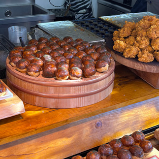 Back at the base, we rewarded ourselves with snacks and a local beer. First up were Takoyaki — doughy balls with bits of octopus inside. We usually love octopus, but these… well, let’s just say they won’t be on our “must-try again” list. Fortunately, the King Fried Chicken stall restored our culinary confidence.